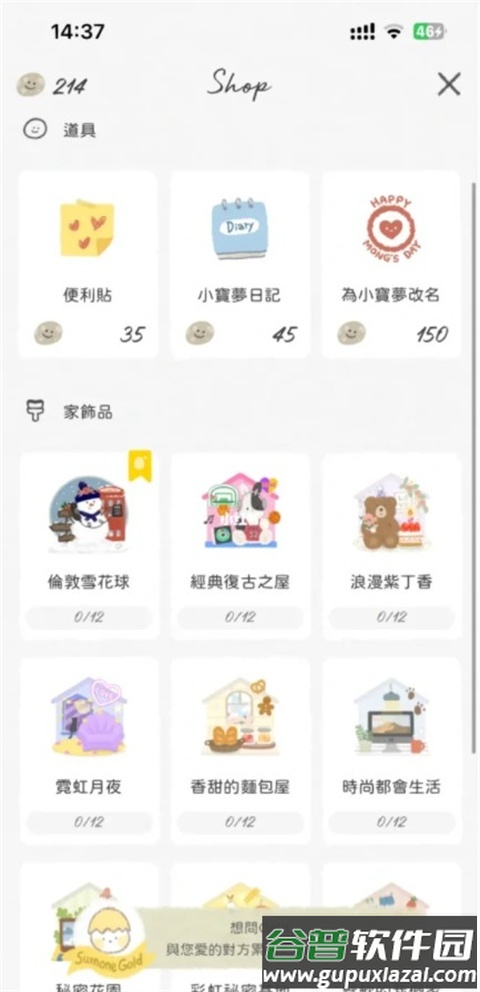 3、装扮内部空间;使用应用中收集的鹅卵石,可以购买各式物品装饰蛋仔的房间;前往商店,从多种主题中挑选心仪商品,季节性主题也会限时推出。