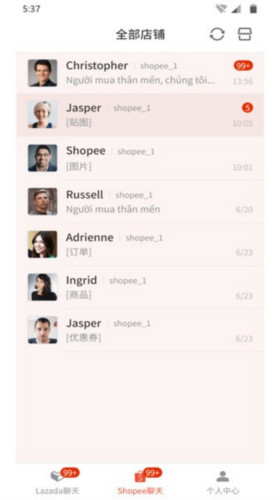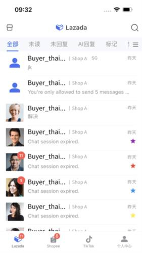 1、客服聊天:支持与Shopee、Lazada买家进行即时对话。