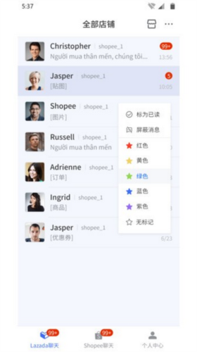 8、标记会话:长按会话可选择不同颜色进行标记分类。