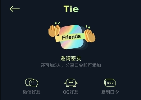 2、进入后即可邀请好友;支持添加微信好友、QQ好友,或复制邀请口令供对方下载。