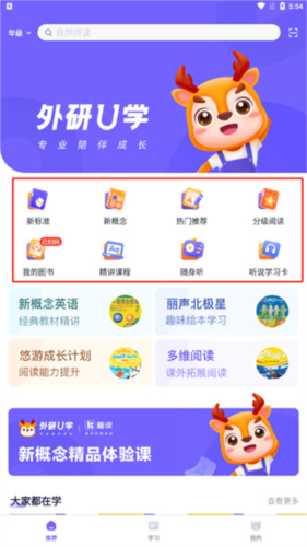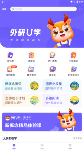 与外研社《新标准》正版教材同步,支持课文点读跟读,可随时调用官方音视频素材;