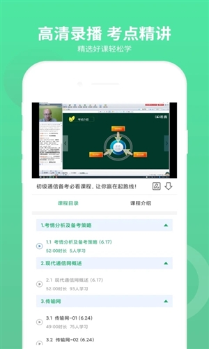 该应用的精品视频课程开放试听,内容覆盖所有关键考点与考试时间节点。通过直播课程与教师答疑,能更透彻地理解历年真题与解析思路。它将高效学习方法融入其中,支持在线学习与章节练习,是一款功能全面、实用性强的通信工程师备考软件。