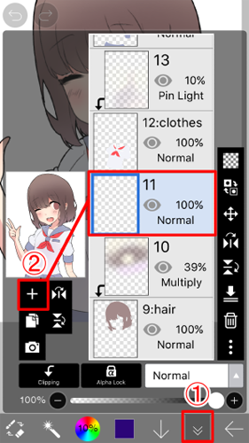 在爱笔思画X中为已绘制的头发添加高光与阴影,可使用“添加”混合模式来表现光亮区域;同理,“正片叠底”混合模式适合用于表现阴影部分。