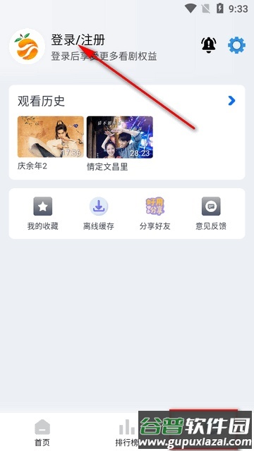 3、进入“我的”页面,点击上方登录注册入口。