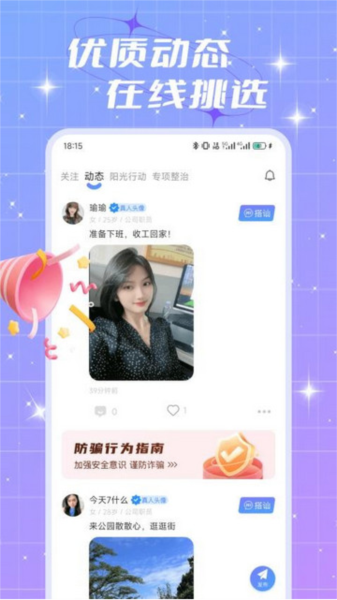 5、浏览平台各类优质动态,发现更多值得结识的朋友。