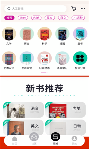 书库资源覆盖全球,包含文学小说、语言学习、人文社科、亲子教育、动漫漫画、艺术鉴赏等多类图书;