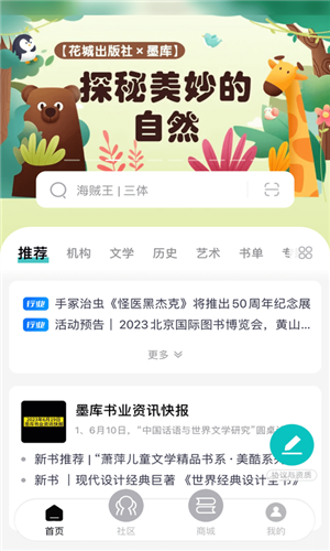 众多专业出版社、媒体与营销机构在此推荐好书,作家编辑分享新作,文化场馆与书店的线下活动也常进行直播,让用户获取新鲜国际文化资讯。