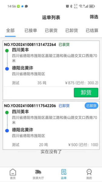 2、信息动态刷新,所有货源信息及用户运单状态均会实时更新,便于随时掌握最新情况;