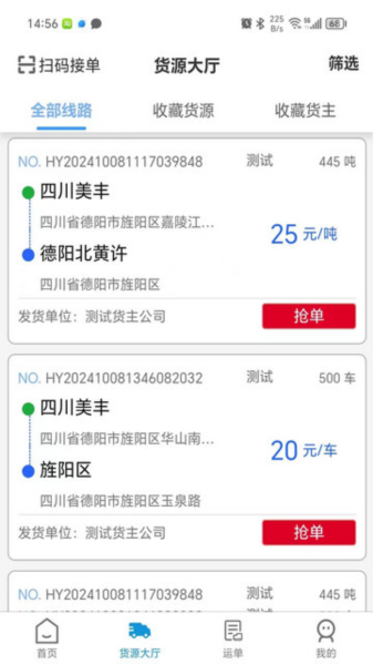 1、货源数量庞大,大厅内持续提供丰富的在线货源,充分满足司机的日常接单需要;