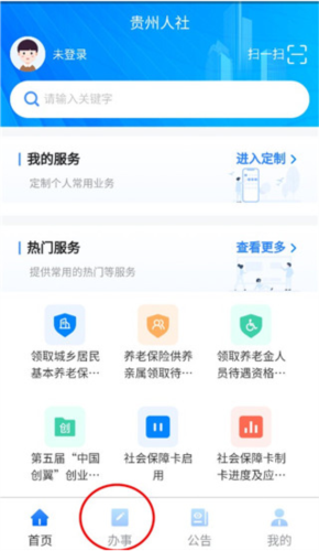 1、用户安装应用后,在底部找到“办事”入口。