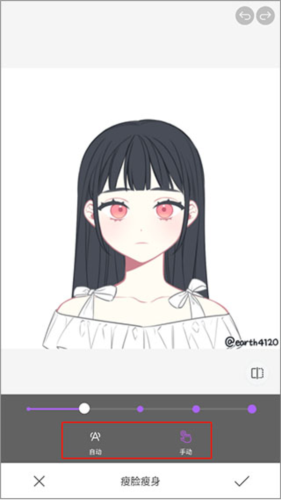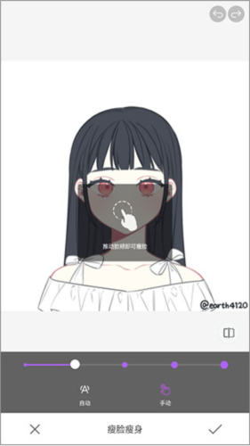 4、在手动模式下,拖动脸颊轮廓线即可实现自然的瘦脸效果。