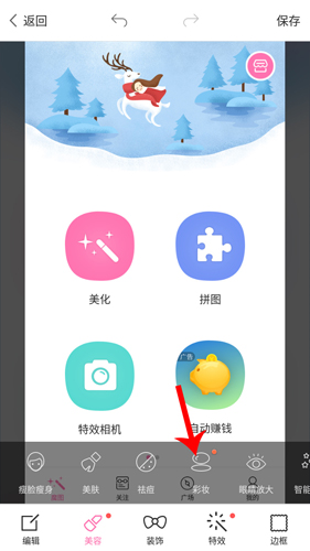 3.点击工具栏中的美容选项。