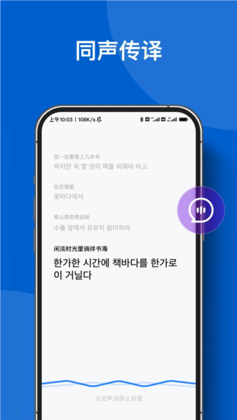 -同声翻译:采用流式语音识别技术,点击麦克风按钮即可实现边说边译。