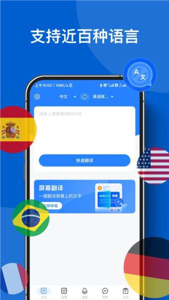 - 支持超过100种语言互译,包括西班牙语、法语、意大利语、英语、中文、日语及韩语等;