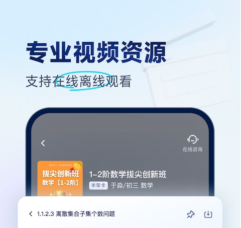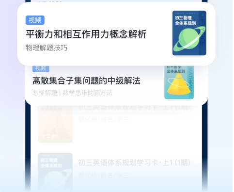 覆盖初中语文、数学、英语等九科千余个重点考点,支持按需学习;