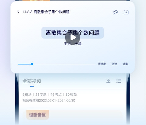 核心功能围绕课程购买、学习界面与视频播放展开,形成完整的学习闭环。