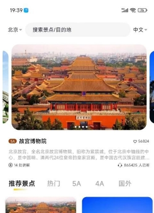 3、推荐功能:通过算法智能推送热门景点讲解,帮助发现旅行灵感;