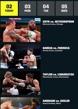 呈现世界冠军拳击赛,明星选手包括德文·哈尼、比利·乔·桑德斯、阿曼达·塞拉诺、凯蒂·泰勒等。