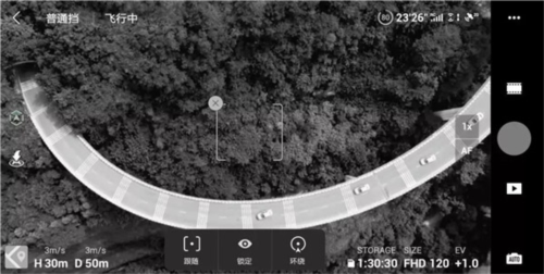 启动后,在屏幕上选定目标;点击开始,无人机将自动按轨迹拍摄视频,完成后返回起始点。