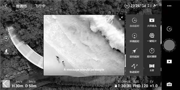 3、手机高速传输:通过Wi-Fi直接将手机与飞行器连接,实现素材同步,最高下载速度可达20MB/s。