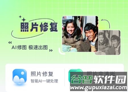 1、旧照片修复功能可智能提升画面清晰度,自动完成修复;