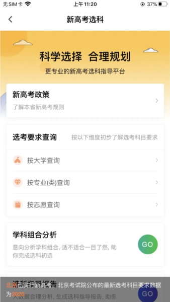 - 新增强基计划、综合评价、高校专项等板块;支持考生了解多种升学途径信息,清晰查看各院校破格入围条件与招生章程。