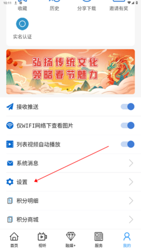 2、在【我的】页面中找到并点击【设置】选项;