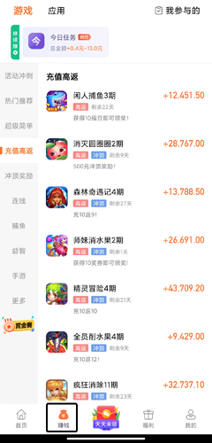 1. 用户在赚钱页面中选择任何一个游戏或者应用;