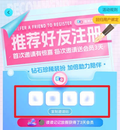 3、在页面中红色方框标注的位置,即可看到你的个人邀请码。
