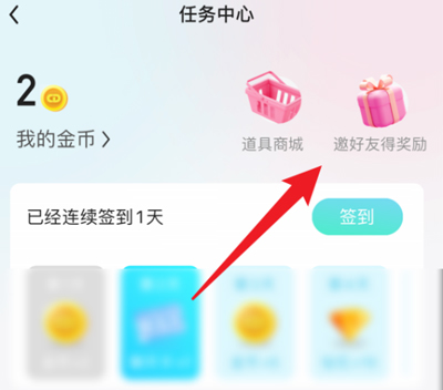 2、找到右上角的“邀好友得奖励”,点击进入。