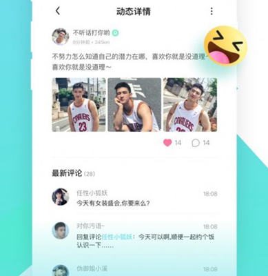 1、动态发布:在平台分享日常生活、心情点滴或美食照片,与好友点赞评论互动。