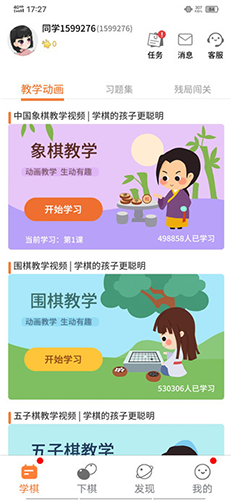 为12岁以下儿童提供丰富动画课程,辅助掌握各类棋艺知识;每课后配有练习环节,助力巩固提升。