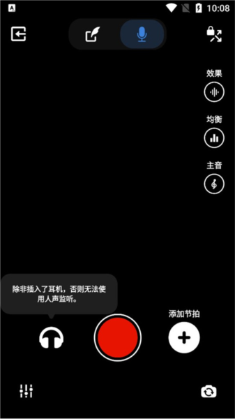 录制时若出现延迟,这通常源于设备硬件性能。应用提供几种缓解方案:建议使用有线耳机进行录制;可关闭左上角的人声监听开关以避免干扰;录制后可使用免费的人声同步功能对齐音轨。