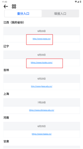 1、汇集各省高考查分与志愿填报官网链接,支持一键直达。