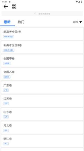 页面内包含历年全国卷与地方卷,选择你需要的试卷年份与类型。