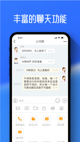 支持实时语音通话与文字消息发送,已读未读状态清晰显示,促进工作协同。