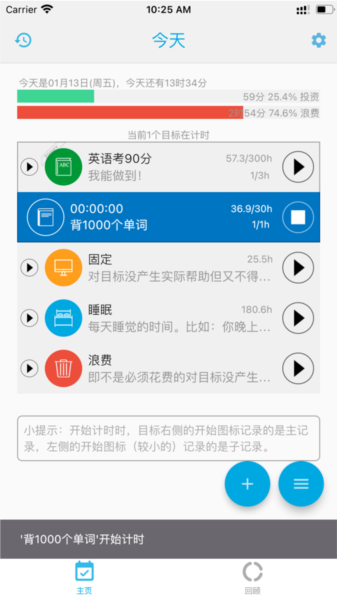2、四类时间划分:把一天划分为投资、固定、睡眠和浪费四种类型,使时间管理对新手更友好,帮助用户明确时间消耗结构。