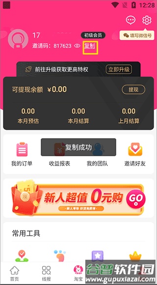 2、界面提示“复制成功”后,邀请码便已保存,可用于新账号注册时填写。