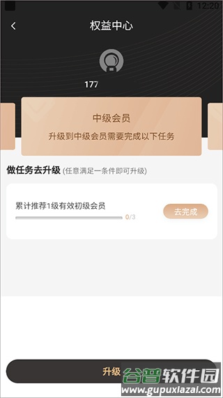 3、点击“去完成”即可跳转到任务界面,按照指引操作,完成后返回升级页面即可点击升级。