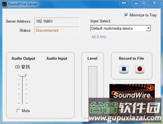 1、分别在电脑与手机安装SoundWireFree,首先运行电脑端程序,记录界面左上角显示的IP地址,确保两台设备处于同一局域网内。