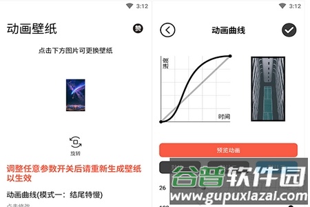 软件内提供多项参数调节选项,比如动画时长、缩放比例、模糊强度等。使用时先添加壁纸,调整好参数后即可生成壁纸;默认提供的三种动画曲线效果已经相当不错,你也可以根据个人喜好自定义其他效果。