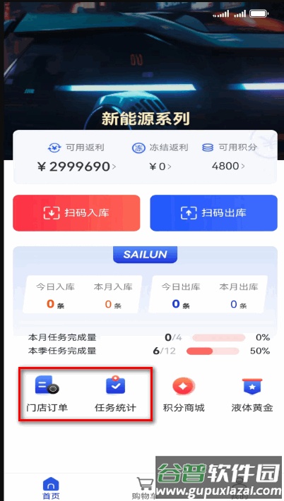 1、安装并启动应用,首页即展示门店订单概览与任务统计面板;