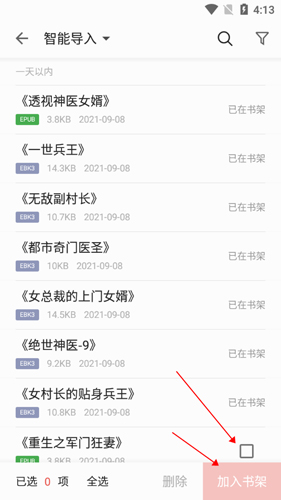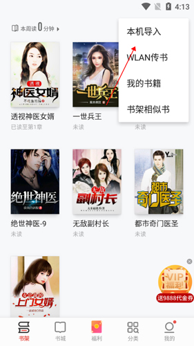 2. 选择导入本机书籍选项。
