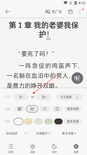 1. 打开需要调整字体的小说内容页。