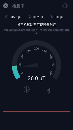2、建议360度旋转扫描可疑设备,手机震动时对应的位置通常是传感器所在处;