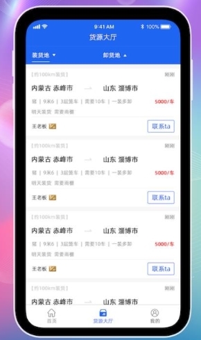 2、货源大厅:汇集各类货源信息,便于用户集中查找与选择。
