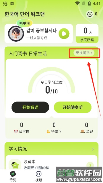 3、选取适合的词书后,便能开始学习。