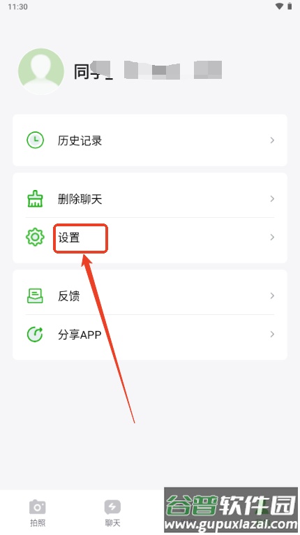 2、进入设置页面;