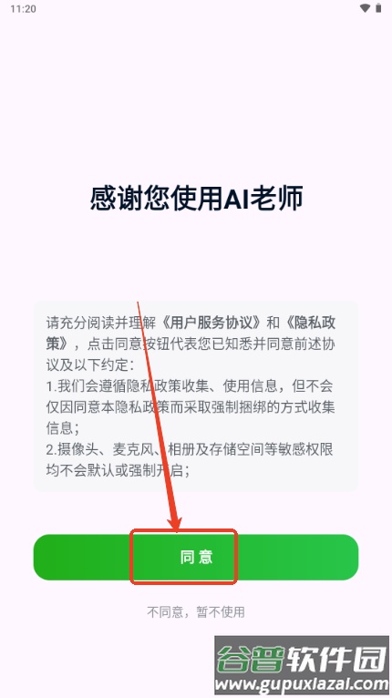 2、打开软件,同意用户服务协议;