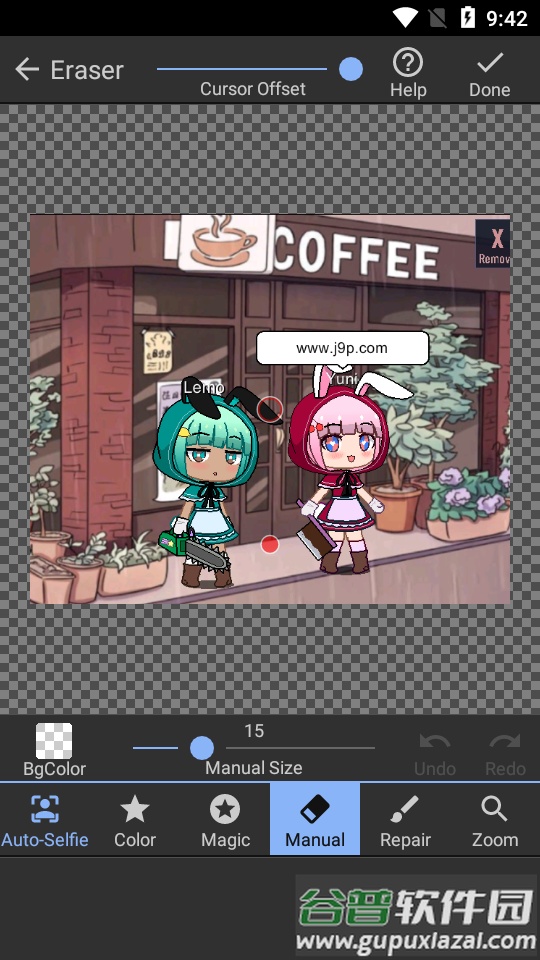 第二种方式是手动清除字体,用户需手动调整擦除按钮的尺寸,每当鼠标划过图像背景时,对应区域便会消失。因此,可以逐一找出不需要的彩色部分,仔细进行擦除。若遇到尺寸较小的元素,还能放大图像局部,继续调整清除按钮的大小进行处理。这两种功能都能有效保留所选主体,同时去除字体部分。